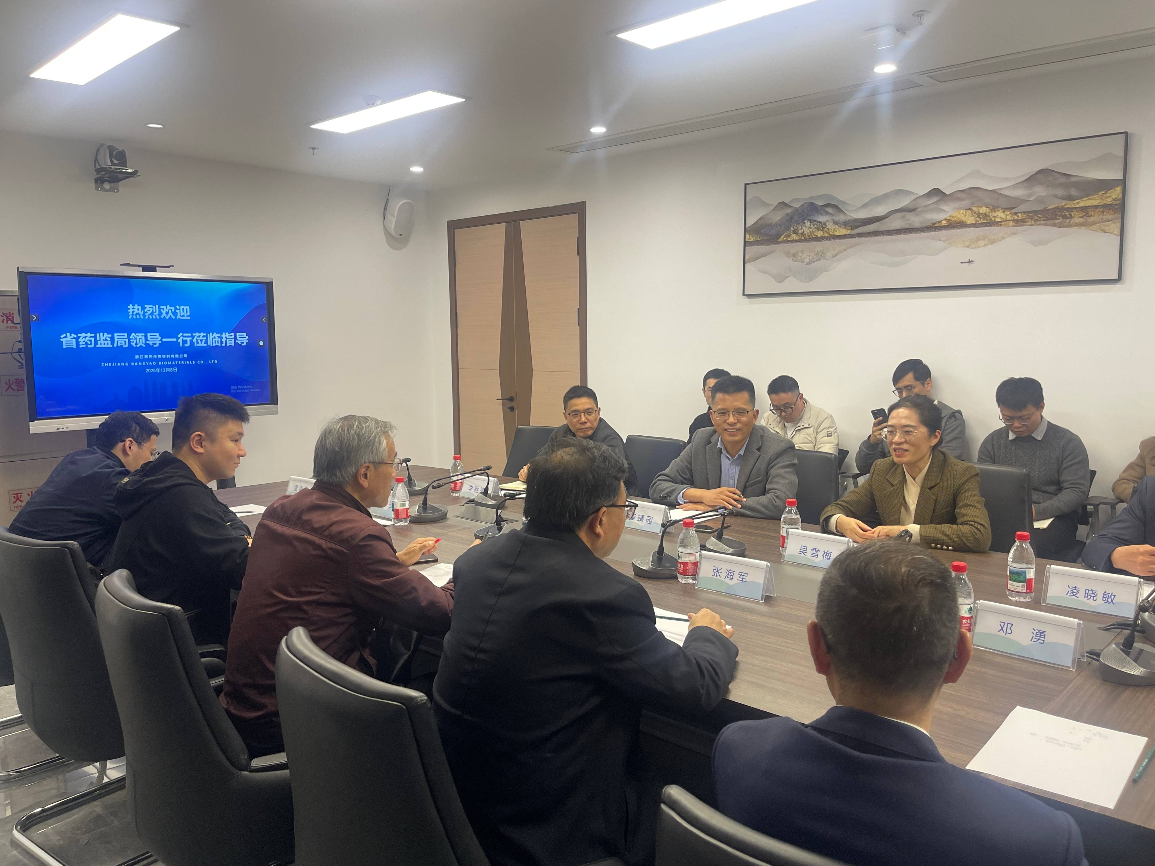 浙江省药品监督管理局党组成员张海军带队调研邦药生物,瓯海区委常委吴雪梅陪同。此次调研被视为主体责任检阅与政策助力,公司将以之为新起点,坚守质量安全,把握创新机遇,协同监管部门与行业伙伴,共促区域医药产业高质量发展。